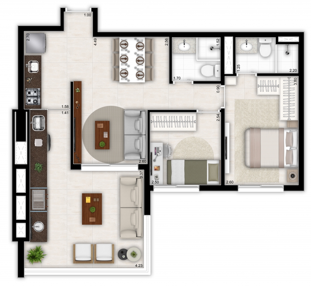 O privilégio de apenas uma torre em 6.313 m² possibilitará mais de 5.500m² de área livre de um lazer completo, um verdadeiro clube resort para toda a família.