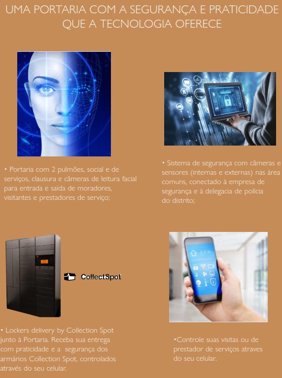 Social e de serviços, clausura e câmeras de leitura facial para entrada e saída de moradores, visitantes e prestadores de serviço;